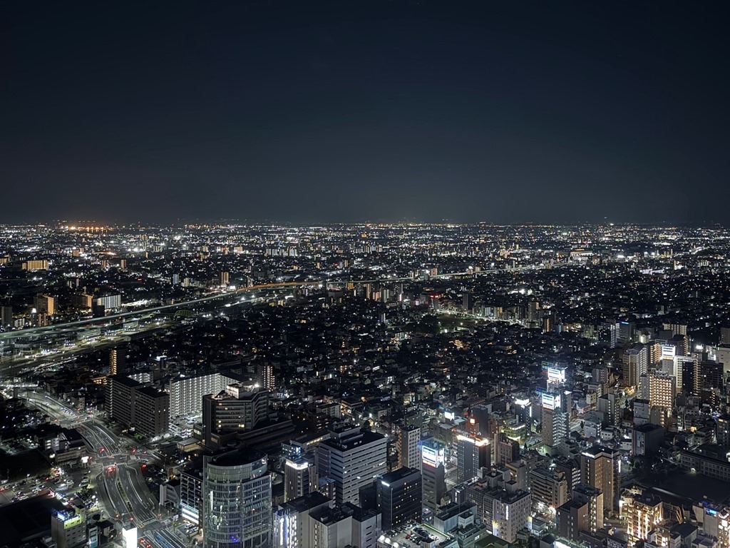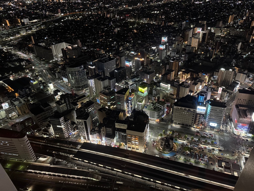 11月1日土曜日は診療が終わってから新横浜経由で名古屋まで。名古屋駅の桜通口側にはJRゲートタワー、JRセントラルタワーズ(ホテル棟、オフィス棟)などの高層ビルが聳え立っています。上階へ上がって見ると名古屋の夜景が一望!。下の写真は東側。