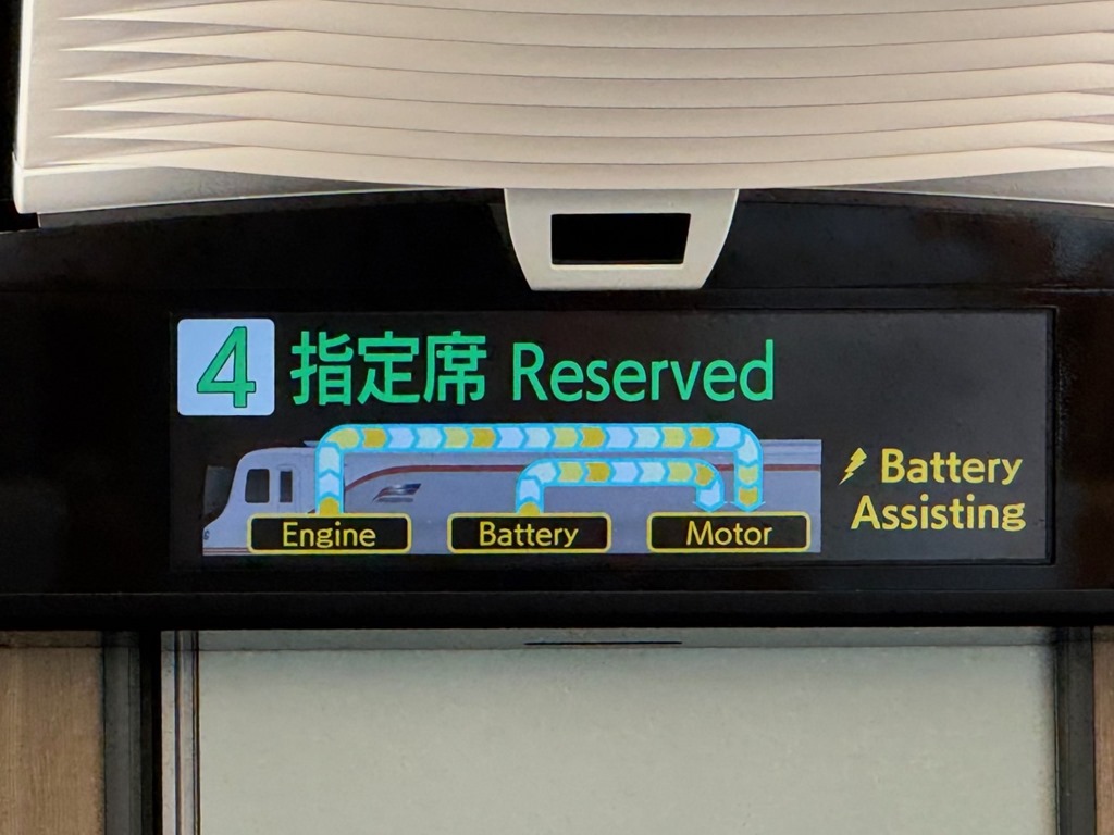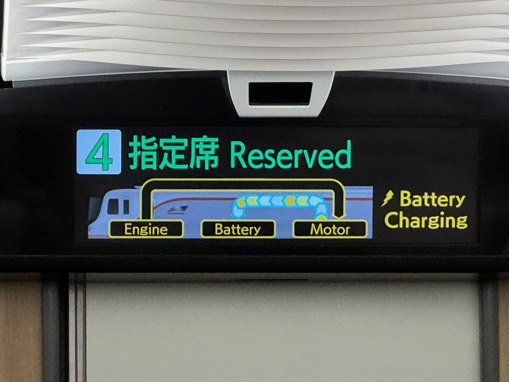 車端部のモニターには現在の走行装置の使用状況が表示されます。