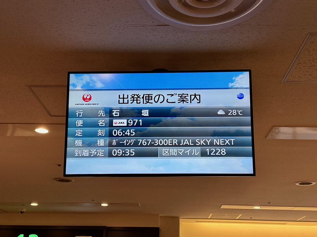 石垣島への直行便JAL971便は早朝6時45分羽田発。連休と言えども早朝の出発ロビー内はガラガラ。