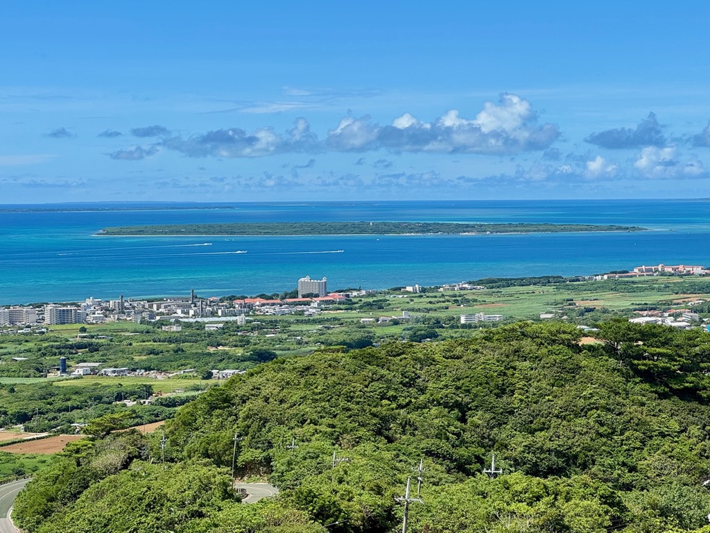 レンタカーを繰ってバンナ公園の高みに上がれば、エメラルドグリーンの海に浮かぶ竹富島が眼前に。猛暑の関東よりもこちらの方が涼しい~!。