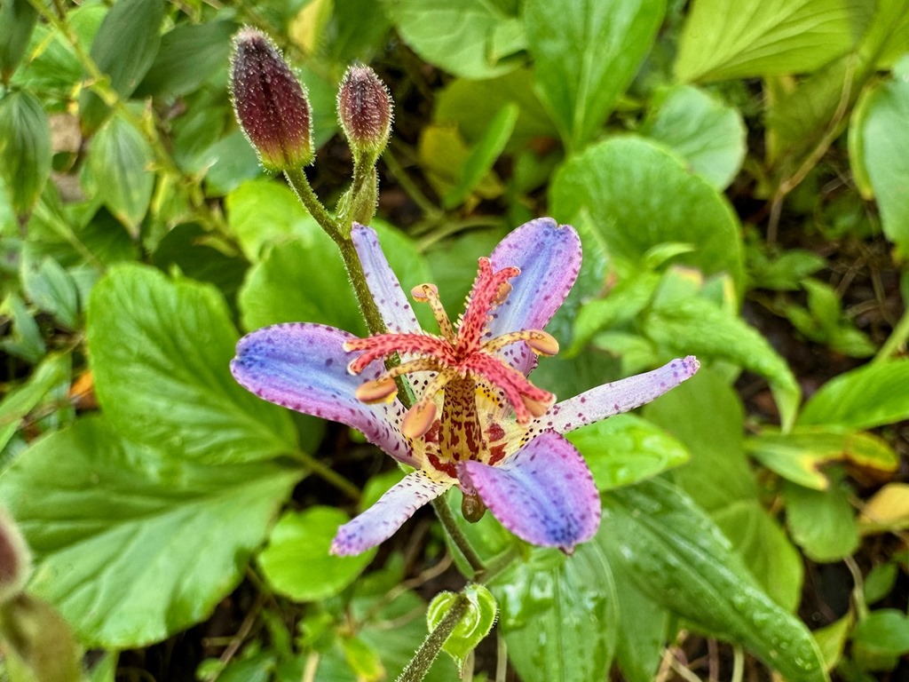 ムラサキの斑点が鳥のホトトギスの胸の模様に似ていることからホトトギスの名が付けられたそうですが、鳥のホトトギスは見たことがありません。