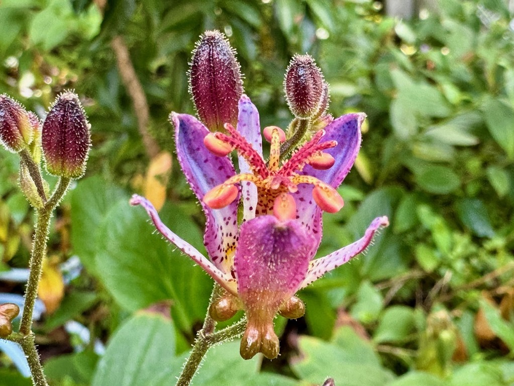 下の写真はタイワンホトトギス(・・・の園芸種でしょうか?)。毎年秋になると見かけるようになりますが、今年も9月半ば過ぎに開花しました。
