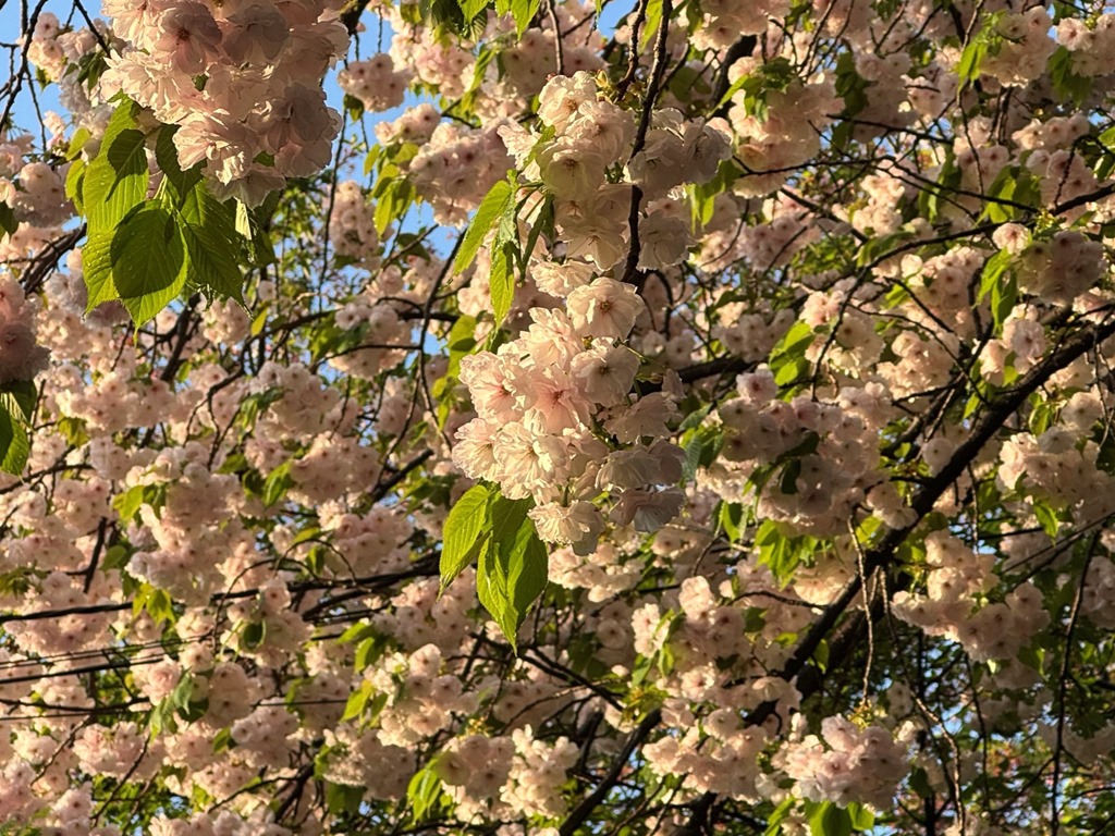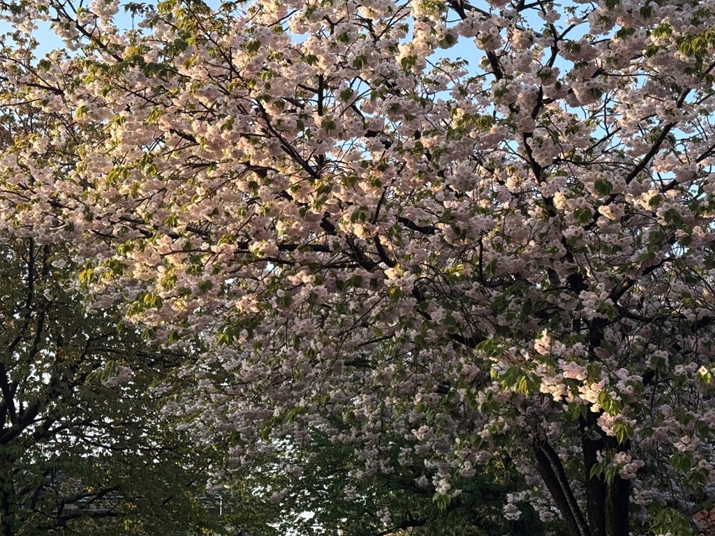 昨日の春の嵐でソメイヨシノの花は完全に散ってしまいましたが、遅咲きの八重はまだ大丈夫でした。
