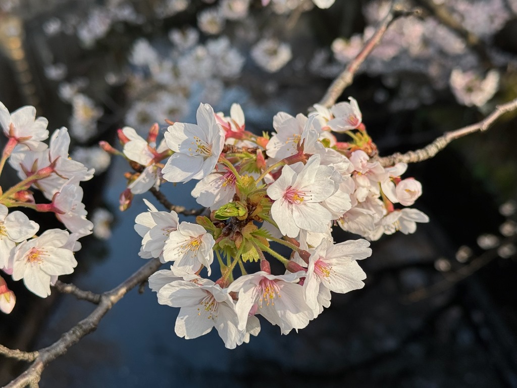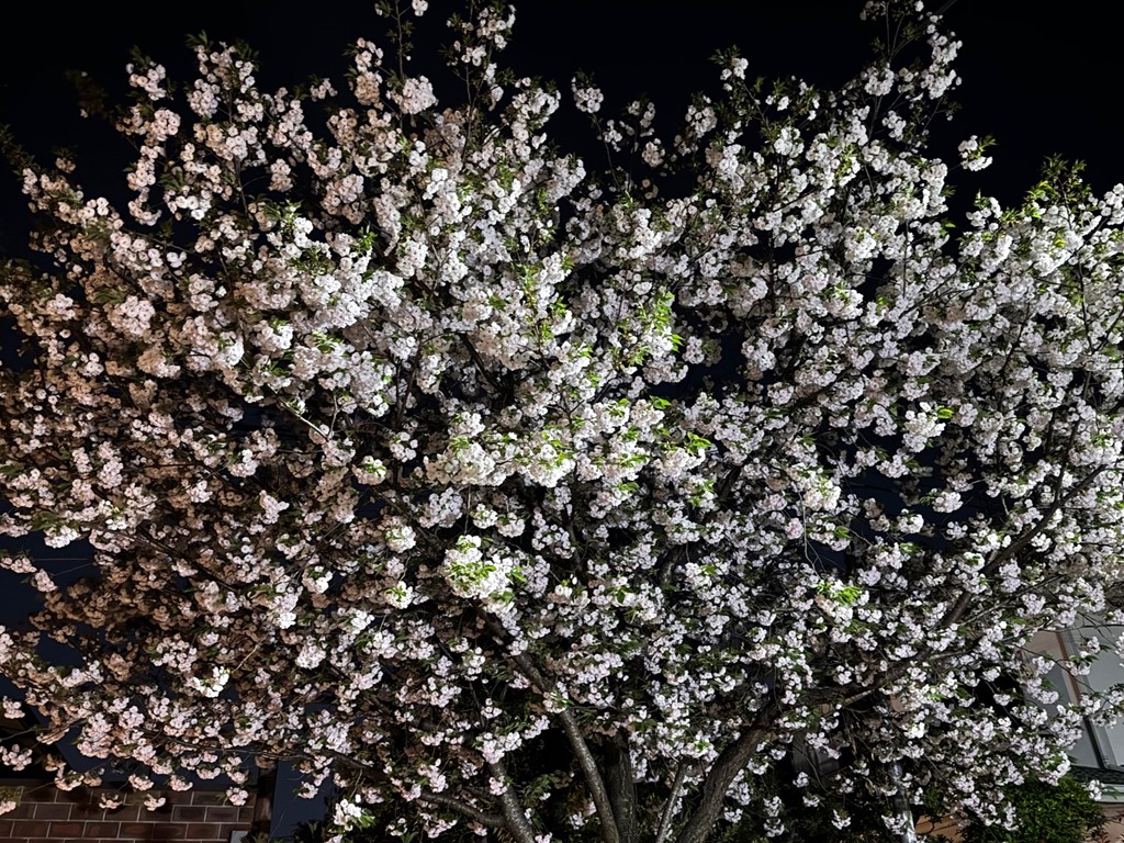 帰りも夜桜見物をしながら。夜も寒くなくなりました。